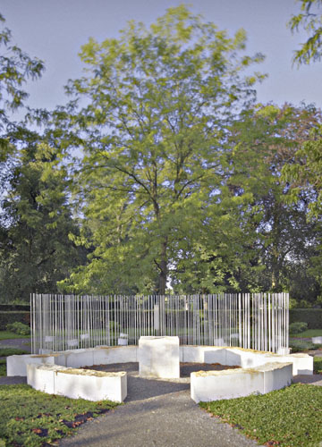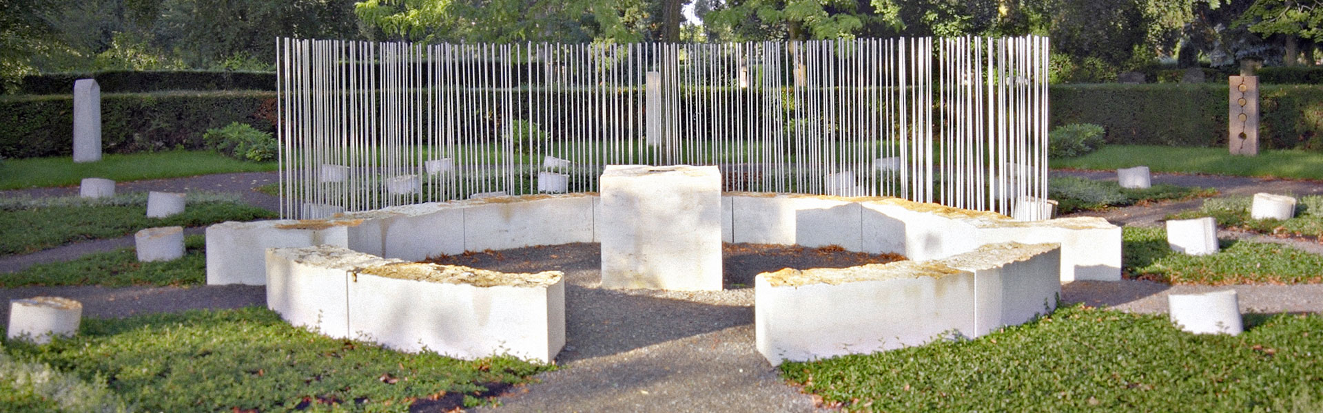 Gemeinschaftsanlage Hauptfriedhof Karlsruhe aus Jurakalkstein und Edelstahlelementen