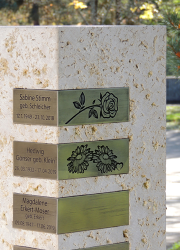 Urnengemeinschaftsanlage Friedhof Plochingen aus Auerkalkstein und Edelstahlelementen