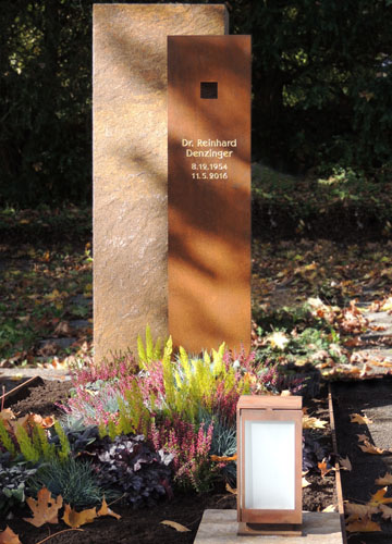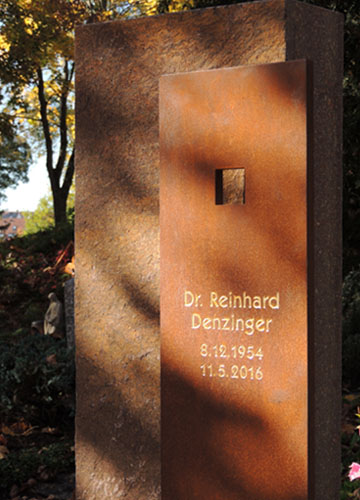 Grabstein aus Porphyr und Corten-Stahl-Platte