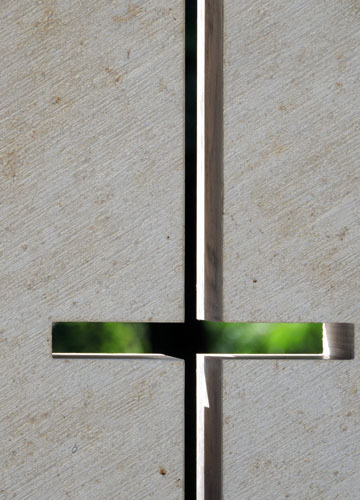 Grabmal aus geriffeltem Jurakalkstein mit Ausschnitt in Kreuzform