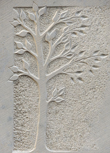 Stele aus grauem Jurakalkstein mit ausgearbeitetem Baumrelief